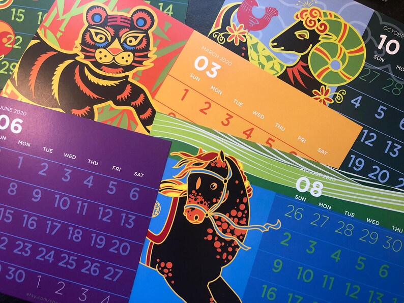 Lunar New Year Calendar , 2020 Desk Calendar Animals Of The Lunar New Year Chinese New | Etsy